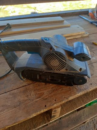 Lijadora de banda usada, en buen estado. Ideal para trabajos de carpintería. - Marca: Desconocida - Modelo: Desconocido - Funciona con cable eléctrico.