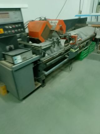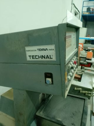 Máquina de corte de doble cabezal, fabricada por Tekna para Technal. - Panel de control con botones. - Indicador de funcionamiento. - Diseño robusto.