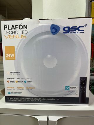 *NUEVO A ESTRENAR* Plafón de techo LED modelo Venus con 24W de potencia. Ideal para iluminar cualquier estancia. - Potencia: 24W - Intensidad regulable de 10% a 100% - Temperatura de color regulable: 3000K (luz cálida), 4200K (luz día), 6500K (luz fría) - Diámetro: 465mm - Flujo luminoso: 1800lm - Color: Blanco - Incluye mando a distancia - Bajo consumo energético (80% ahorro) - Apto para superficie - Regulable en intensidad y temperatura de color