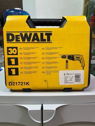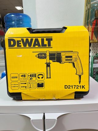 Taladro percutor DeWALT D21721K con motor de 650W. Ideal para trabajos de bricolaje y profesionales. - Potencia: 650W - Capacidad del portabrocas: 1.5-13mm - Velocidad sin carga: 0-1100 / 0-2600 rpm - Capacidad de perforación en madera: 40/25mm - Capacidad de perforación en acero: 13mm - Capacidad de perforación en hormigón: 16mm