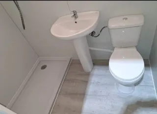 VENTA desde 3.665 euros Y ALQUILER desde 225€. Baño completo prefabricado en panel sándwich. - Incluye plato de ducha. - Lavabo con pedestal. - Cisterna de inodoro.