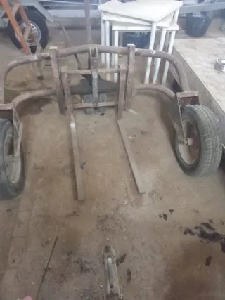 Transpaleta neumática diseñada para trabajos en obra. Su robusta construcción la hace ideal para entornos exigentes. - Estructura metálica resistente. - Ruedas neumáticas para facilitar el movimiento.
