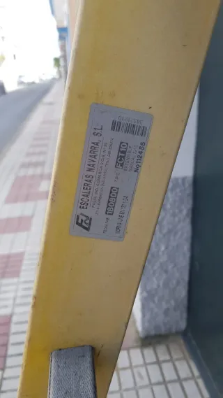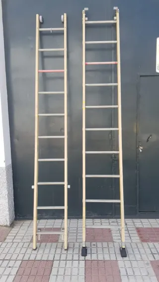 Escalera de fibra de dos tramos, ideal para trabajos en altura. 10 peldaños cada tramo. - Fabricada en fibra de vidrio resistente. - Diseño de dos tramos para mayor alcance. - Ruedas en la parte superior para facilitar el apoyo. - Tapones de goma en las patas para mayor estabilidad.