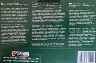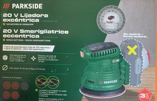 Lixadeira excêntrica Parkside 20V. - Modelo: PAEXSG 20-Li B1. - Sem bateria nem carregador. - Velocidade de rotação em vazio: 12.000 rpm. - Diâmetro do disco: 125 mm. - Diâmetro de oscilação: 1,6 mm. - Inclui acessórios. - en de caja se compro hace un mes para un pequeño trabajo en particular, usado muy poco, como nuevo. de regalo un paquete de 20 lijas