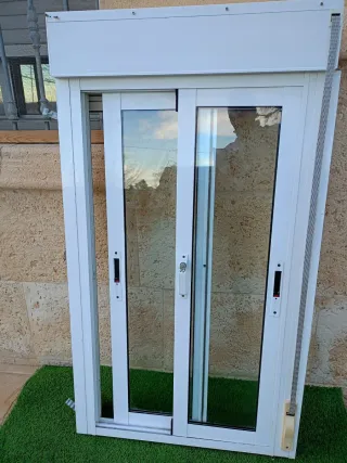 Conjunto de ocho ventanas correderas con persiana incorporada, listas para instalar todas de iguales de la misma medida - Medidas: 75 cm de ancho x 135cm de alto. - Marco de aluminio blanco. - Doble cristal para mejor aislamiento. - Sistema de apertura corredera. - Incluye persiana enrollable.