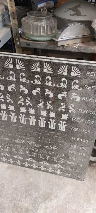 Piezas de mármol con grabados decorativos. - Diseños variados. - Grabados con referencias numéricas.