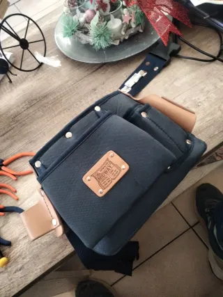 Práctico bolso portaherramientas de la marca Midway, ideal para organizar y transportar tus herramientas.Se ata a la cintura. - Fabricado en lona resistente. - Detalle de cuero en la etiqueta y trabillas. - Múltiples compartimentos para una mejor organización.