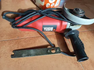 Amoladora eléctrica de la marca Black+Decker. - Mango auxiliar para mayor control. - Protector de disco. - Llave de ajuste incluida. 2usos (NUEVA)