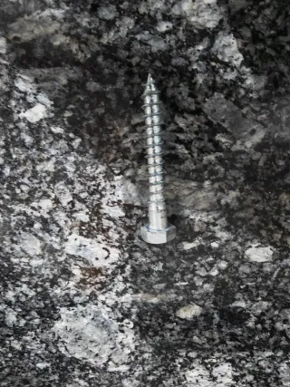 Caja empezada de tornillos tirafondos con acabado zincado. - Medidas: 8 x 60 mm. - Cantidad: 40 unidades. - Norma: DIN 57.