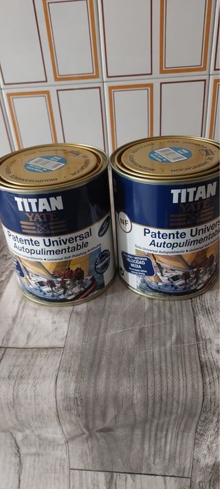 Se venden dos latas de pintura Titan Yate. Patente Universal Autopolimentable. Acabado brillante. Para evitar que se apague el carolocolillo al casco del barco 30€ cada una
