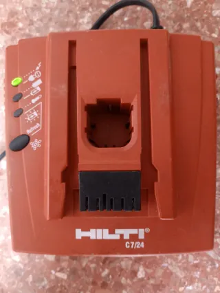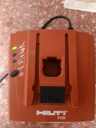 Cargador Hilti C7/24 en color naranja. - Indicadores LED de carga. - Botón de Refresh.