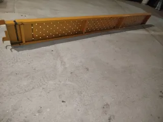 Conjunto de andamio completo 300largo y 105cm ancho; con 2 pasarelas de 3metros de largo y 8 puntales metálicos. Todo bien conservado. El Andamio completo 225€, resto puntales - Estructura robusta de metal. - Color amarillo y naranja.