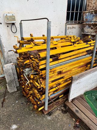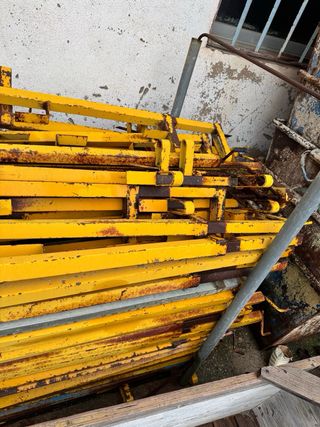Andamio metálico de color amarillo, ideal para trabajos en altura. Se encuentra desmontado y listo para su transporte. 4 cuerpos 4 crucetas venta solo en mallorca Escucho ofertas - Estructura tubular resistente. - Componentes de metal.