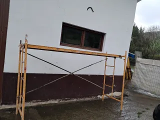 Conjunto de 4 andamios metálicos, ideales para trabajos de construcción o reformas. Se encuentran en buen estado, listos para su uso. - Estructura robusta de metal. - Varios módulos disponibles. - Pintura amarilla y naranja. - Precio por dos laterales una cruceta y una plataforma. 125 € - Más andamios se escuchan ofertas.