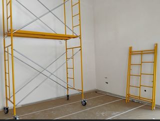 Tengo dos andamios metálicos de color amarillo en buen estado. Tienen dos plataformas cada uno. Precio por andamio 150. Si quieres dos ruedas, 25€ adicionales. Si te llevas los dos andamios, te regalo las ruedas. Se recoge en San Agustin de Guadalix
