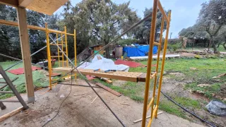 Andamio de obra metálico, ideal para trabajos de construcción o reformas. Su estructura es robusta y resistente. Las escaleras que aparecen en la foto no estan incluidas - Material: Metal. - Color: Amarillo y óxido. - Diseño: Perforado.