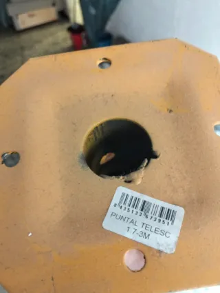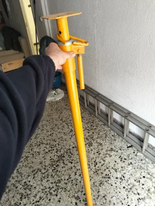 Puntal de obra de color amarillo, utilizado para soportar cargas. - Material: Metal. - Color: Amarillo. En perfecto estado. Se ha usado para una obra reciente pero esta perfecto.