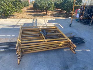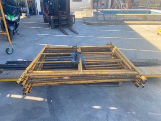 Se venden tramos de andamio, listos para su uso. - Estructura metálica resistente. - Barras de soporte amarillas. -8 tramos de andamio con sus tijeras. -1 metro de anchos. -12 puntales. -No tengo las chapas