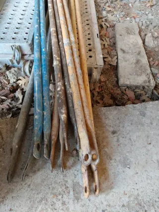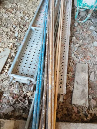 Vendo chapas de andamio de 3m y 2.50 a 18€ chapa,marcos de andamio dino de 2x0.75 amarillos y otros rojos a 20€ marco y puntales de 4m a 10€ y de 3 a 3.5 a 7€