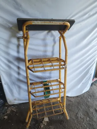 Escalera de hierro con peldaños de rejilla. - Estructura metálica resistente. - Color amarillo. - Tres niveles.Parte alta 90 ancho 50 altura de escalón a escalon 30. Negociableeeeee. Urge vender...... precio negociable
