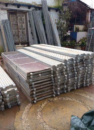 Andamio europeo completo unos cuatro metros aproximadamente con chapas está desmontado ver sin compromiso ninguno