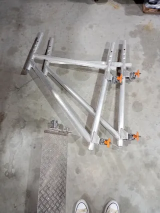 andamio nuevo de aluminio homologado reforzado nuevo de 2 alturas para trabajos hasta 4,70 de alto con ruedas con freno ,ancho 75cm ,plataforma 1,90cm con trampilla y con sus barras ,similar a termiser, altrex, layher,wurth, alufase,svelt,instand,serio y fiable uso WhatsApp. precio más iva.