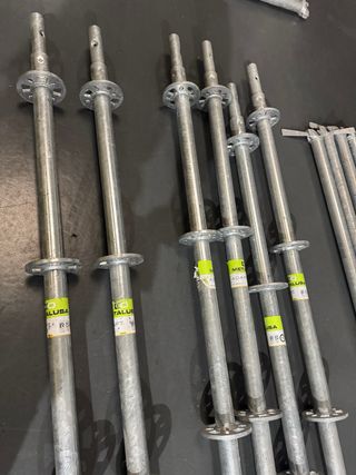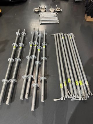 Conjunto para andamio multidireccional adapt Incluye: - 6 pilares de 2 metros - 4 ruedas con husillo - 8 barras horizontales de 2 metros - 12 barras horizontales de 1 metro - 2 husillos *nuevo a estreno excepto las ruedas* Precio nuevo valorado en 1000€, precio de anuncio oferta No se envia