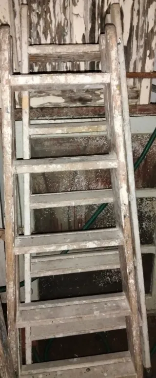 Escalera de hierro con peldaños de madera, escalera muy fuerte y útil. Escalera antigua de Pintor,una fortaleza increíble y no las de aluminios con los peldaños remachado y que re rompen muy fácil. Escalera de 5 escalones,en buen estado y duradera. Para hogar,patio,campo ,trabajo,pintura,almacenes y etc .. Ven a verla y la compruebas!!