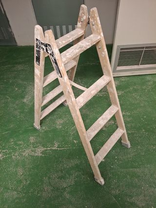 Escalera pequeña de madera tres peldaños. Pintor. 85 x 45 abierta