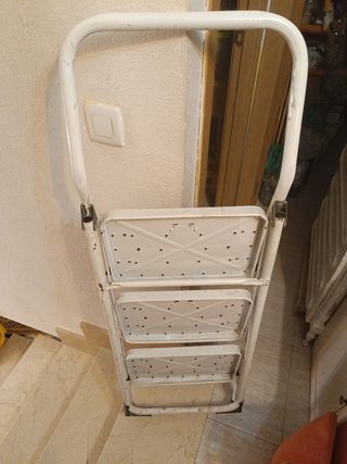 Escalera 3 peldaños metal blanca,bastante resisten