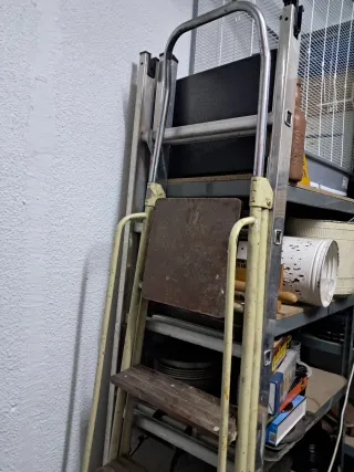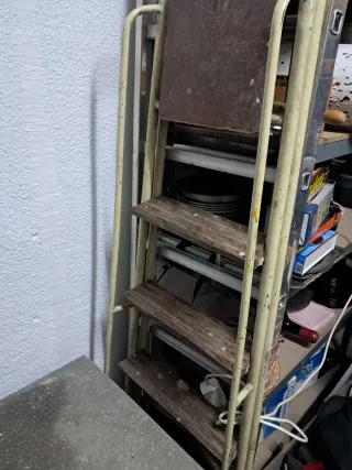 Recogida o envío desde Aspe /Alicante Por mudanza, se vende escalera de mano plegable de hierro y 3 peldaños de madera. Está manchada por el uso pero en buenas condiciones Recogida en Alicante Mucho más en mi perfil.