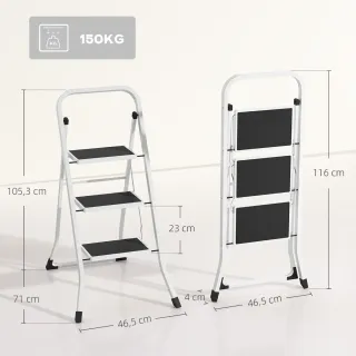 Escalera plegable de 3 peldaños, ideal para tener en casa. - Estructura metálica. - Color blanco
