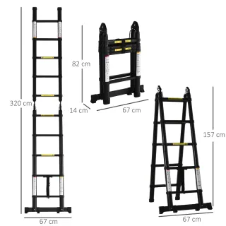 Escalera telescópica de aluminio, ligera y fácil de transportar. EN SU CAJA. - Longitud extendida: 3,2 metros. Recogida mide 80cm. Patas de goma antideslizantes. - Material: Aluminio. - Marca: Brstheco - Material: Aluminio. - Longitud extendida: 3.2 metros. - Diseño compacto y portátil.