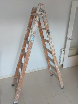 Escalera de madera Plabell con 7 peldaños y una altura de 1.87 metros. Ideal para trabajos en altura. - Marca: Plabell - Número de peldaños: 7 - Altura: 1.87 metros -Robusta