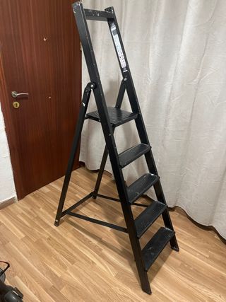 Escalera de aluminio con cinco peldaños, ideal para tareas del hogar o profesionales. - Material: Aluminio. - Número de peldaños: 5. - Color: Negro. -Medidas : altura 1,90 altura de 5 peldaño 1,11