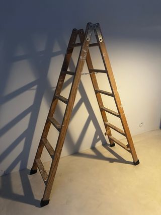 Escalera de tijera de madera fabricada artesanalmente con las mejores maderas seleccionadas, ideal para trabajos en casa o profesionales. Su diseño permite una fácil apertura y cierre. - Peldaños planos de 6 cm de profundidad anchos para mayor seguridad - Producto fabricado según normativa UNE EN 131 - Anclaje de peldaño con doble mechón anti torsión - Construcción robusta de madera. - Puntas de goma en las patas para evitar deslizamientos. Número de peldaños: 10 ud., Altura de trabajo: 3,05 m, Carga soportada: 150 kg