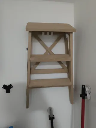 Escalera de mano de madera de IKEA, ideal para tener en casa. Vendo por mudanza - Diseño de madera clara. - Dos peldaños. - Estructura con cruces decorativas.