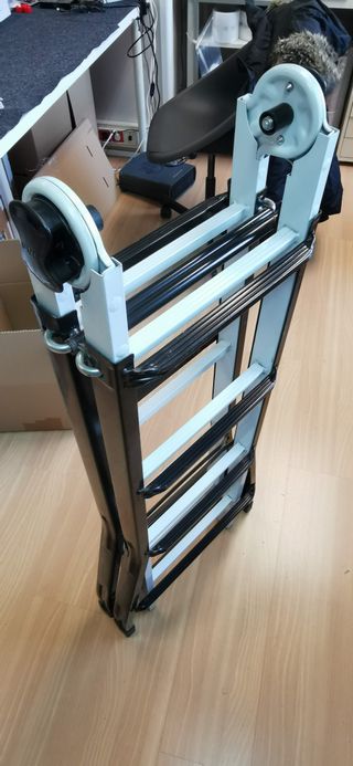 Escalera metálica multiposición y telescópica. - Altura de 7+7 peldaños. - 3.5m Está nueva pero algo sucia de pintura.