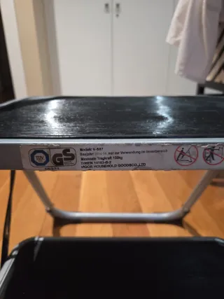 Escalera plegable de metal, ideal para trabajos domésticos. Está en perfecto estado. - 4 peldaños resistentes. - Estructura de aluminio. - Diseño plegable para fácil almacenamiento. - Color negro.