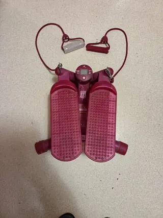 Stepper compacto para ejercicio en casa, con bandas elásticas para trabajar el tren superior Como subir y bajar escaleras. - Pedales con superficie antideslizante. - Pantalla digital para seguimiento de ejercicio. - Bandas elásticas de resistencia incluidas. - Color rosa.