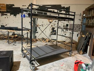 Andamio metálico de 2 metros de altura. Incluye soportes para mayor estabilidad. - Estructura robusta. - Plataforma de trabajo. - Ruedas para fácil movilidad.