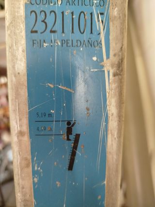 Escalera de aluminio de 17 peldaños, en buen estado. - Fabricada en aluminio. - 17 peldaños a 28 cm -475 cm de alta -Postes de 70*25 mm -Peldaños de 30*30 mm - Ideal para trabajos en altura.