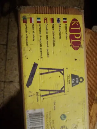 Caballete nuevo, aún precintado y listo para usar. Su diseño permite plegarlo para un fácil almacenamiento y transporte.Como bien indica la etiqueta del q está precintado es madera de pino macizo asegura sostener un peso de 250kg y solo hay q buscar la tabla q Haga la mesa y poder poner lo q un@quiera o bien para exhibir los periódicos,e.t.c.para un puesto genial ,y exibir lo q un@quiera mostrar ,plegable nunca Ha sido usado ya q fue comprado en su día por mi hará como 8 años y poder poner bisutería q Hera mi caso pero no llegó a estrenar y un caballete sigue con su plástico y todo como cuando lo compre.y no lo voy a usar.Bien d pre