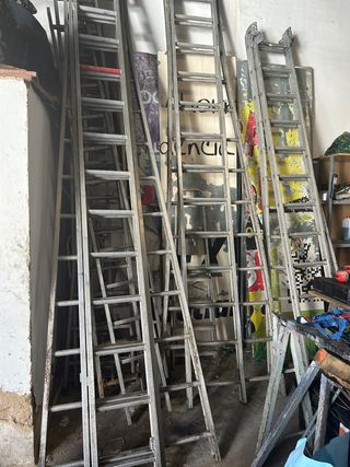 Se venden 5 escaleras de 3 tramos 4 de ellas. Una está doblada, 3 son grandes y 2 chicas de 7 m con los 3 tramos