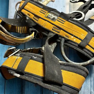 El pack incluye: 1. Arnés Integral Singing Rock: Modelo de cuerpo completo con puntos de anclaje de seguridad (marcado con "A"). Cinturón y perneras acolchados para mayor comodidad en periodos de suspensión. Hebillas de regulación metálicas funcionando correctamente. 2. Dispositivo Anticaídas Deslizante Climax: Diseñado para uso exclusivo con cuerdas de anclaje Climax. Incluye elemento de amarre de cuerda trenzada con guardacabos reforzado. • Estado: Usado. El equipo presenta manchas de suciedad/obra (pintura blanca) que no afectan al funcionamiento mecánico, pero son visibles en las fotos. Las costuras de seguridad están intactas.