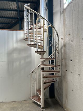 Escalera de caracol con estructura metálica y peldaños de madera. No va desmontada , el transporte corre a cargo del comprador - Diseño clásico y funcional. - Ideal para espacios reducidos. - Acabado en blanco.