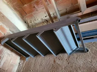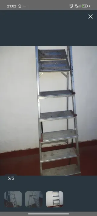 Dispongo de 3 escaleras: 1. Escalera de la foto: 1,95m 8 peldaños 50€ 2. 1,85m 7 peldaños 47€ 3. 1,70m 6 peldaños (2 unidades) 45€