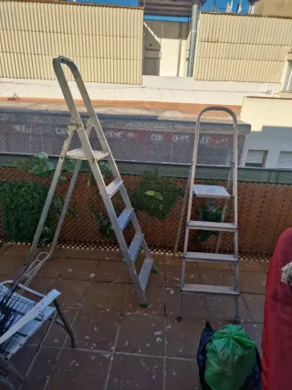 Se venden escaleras metálicas en buen e stado. Son plegables y fáciles de guardar. El grande 20 y el pequeño 15‼️ - Material: Aluminio - Color: Plateado - Diseño: Plegable
