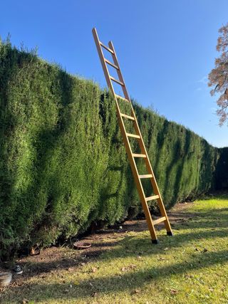 Estantería tipo escalera de madera, ideal para colocar plantas o decoraciones. - Estructura de madera clara. - Diseño de escalera. - Múltiples baldas.