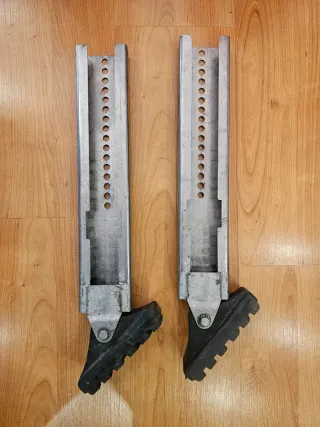 Patas regulables de aluminio para escaleras extensibles, diseñadas para una sujeción segura en superficies irregulares. - Fabricadas en aluminio. - Sistema de regulación de altura con múltiples orificios. - Pies de goma resistentes para estabilidad. - Ideales para usar en escaleras de fibra.